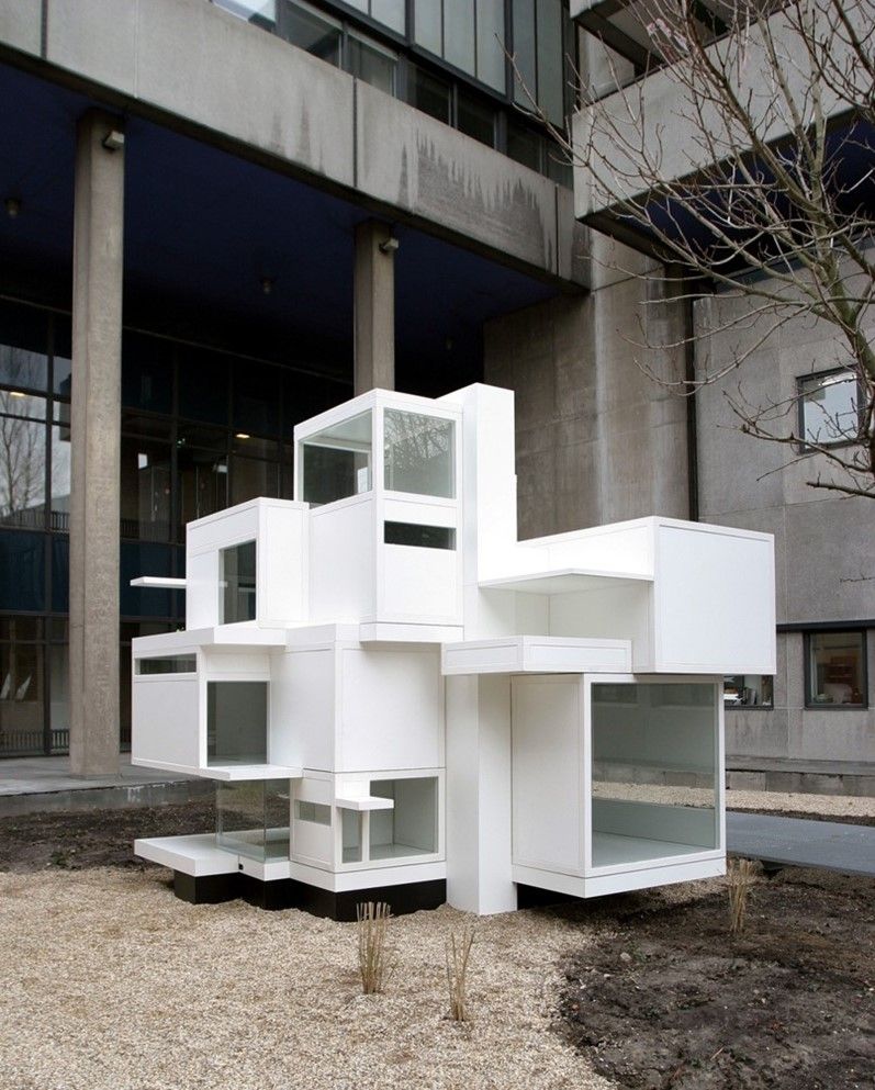 De tentoonstelling omvatte vier schaalmodellen 1 op 50 (40 cm), geplaatst in de Zuidserre. Het Grote Prototype (1 op 5 , groot 4 x 4 x 4 m) stond buiten voor het plein aan de Julianalaan in het zicht van het faculteitsgebouw. Er waren een tiental wandposters met daarop de tekeningen, isometrieën en foto’s van het Maison d’ Artiste als inspiratie voor ontwerpende studenten.